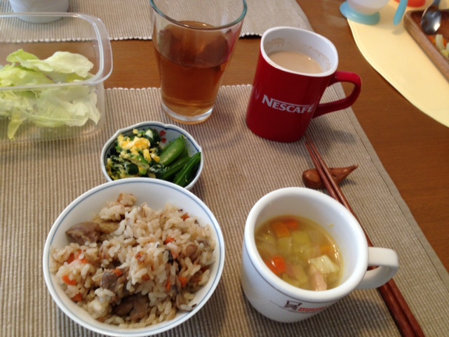 ので、夕べから炊き込みご飯とバナナパンを仕込み、食べさせています。