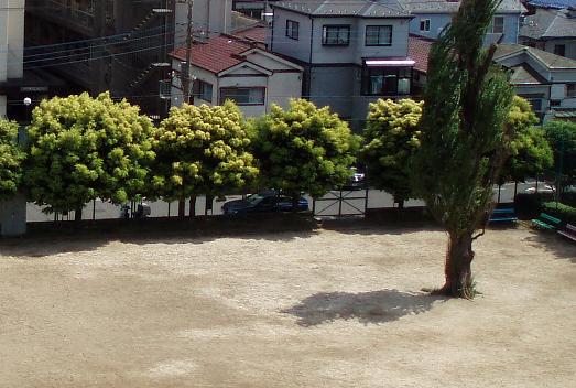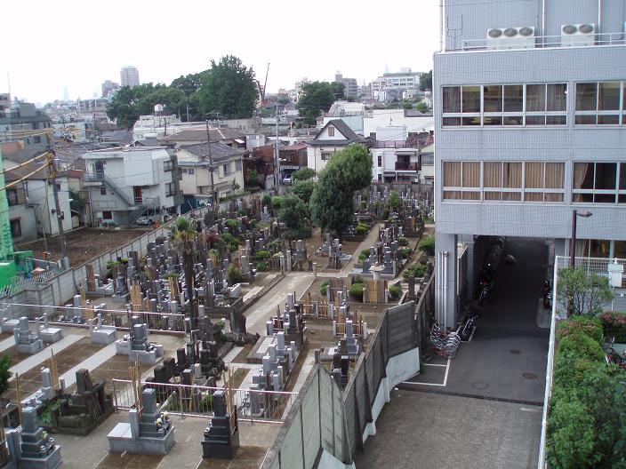 「こんな墓地に囲まれた学校です」って事で撮った写真。