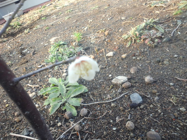 まだ樹の少ない我が家の庭では、梅がつぼみをつけたまま、