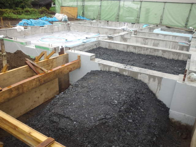 といっても、基礎はできているので、あとは玄関、お勝手の階段、階段下床下げ収納の部分。