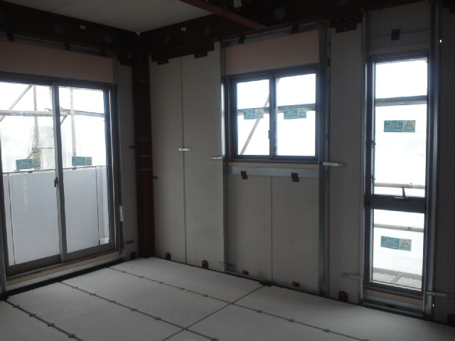 写真の腰高窓と長い窓の間に壁が出来る予定。