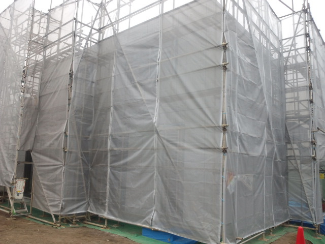 週末には家の外壁が組まれているはず。