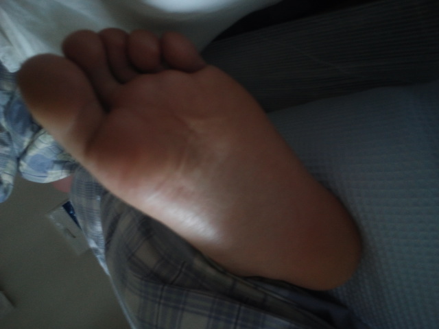 そんなわけで写真を撮られても起きない夫の、足を激写(笑)