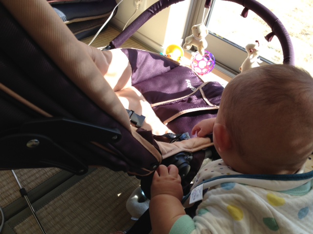 今日の息子のブームは、バウンサーを触ること(笑)