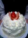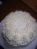 まずU氏が生クリームを塗り、私はチューブでクリームを飾る。