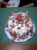 白い雪の地(生クリーム地)にどのように花(苺とブルーベリー)を咲かせるか。