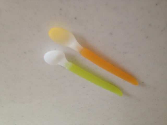 (柄の黄色いスプーンが調理した方。本来はさきっちょが緑のものと同じ色だった)