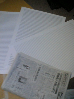 ↓写真は新聞紙と比較出来る様、五線紙を並べてみた。