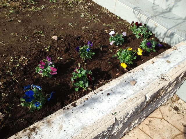 写真は、お土産(?)にいただいたスミレを植えたところ。