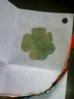 それと一緒に、今朝作った四つ葉のクローバーを入れた御守りも。