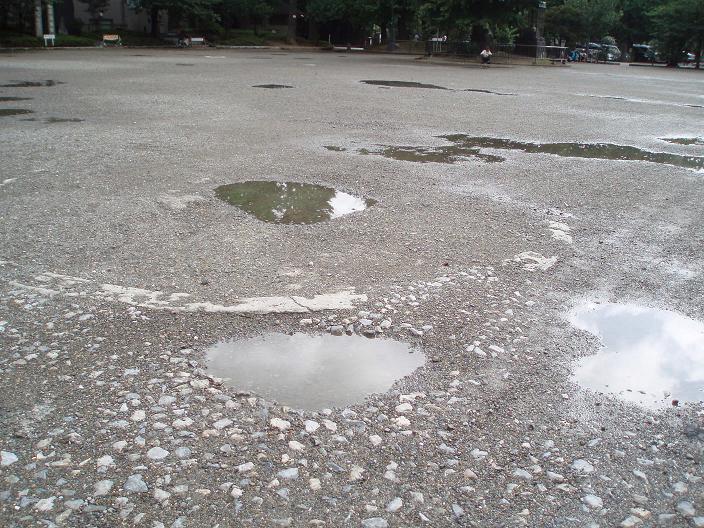道の両端が陥没していたり
