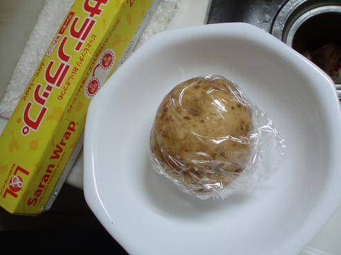 ●水をじゃがいものまわりにたっぷり付けてから、ラップで包む。