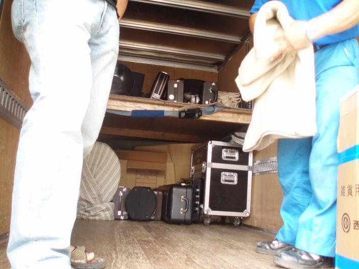 朝、学校で積み込み。