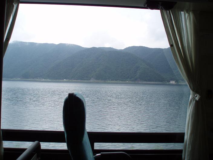 新宿から河口湖駅まで、高速バスで移動。