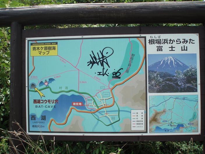 車道を歩いていけば西湖から15分でコウモリ穴に着けたところ、